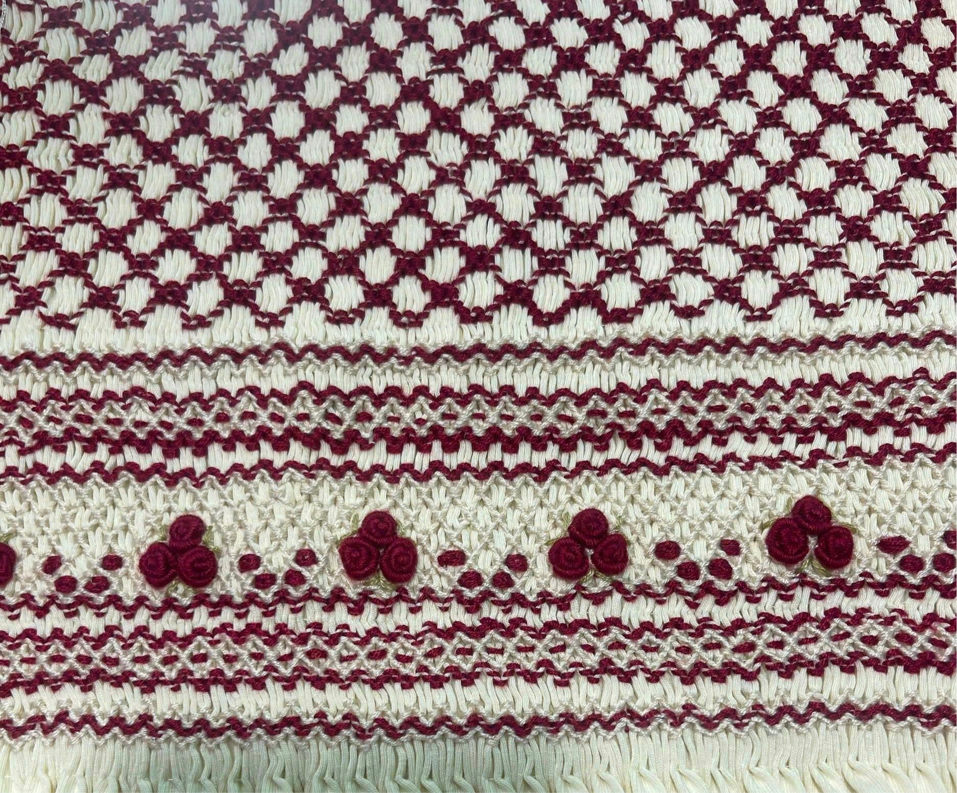 All cream Hand smocked deep red & cream babygrow
